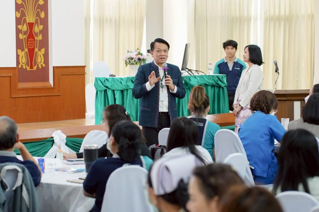 ผศ.นพ.เศรษฐพงศ์ บุญศรี รองคณบดีด้านพัฒนาคุณภาพองค์กร คณะแพทยศาสตร์ มช. เป็นประธานเปิดโครงการขับเคลื่อน MED CMD KM Facilitator Initiative: Driving Sustainable Organizational KM Development พร้อมกล่าวต้อนรับ และชี้แจงวัตถุประสงค์ของโครงการ โดยโครงการจัดเพื่อพัฒนา KM Facilitator ของคณะฯ ให้มีความรู้ ทักษะ เข้าใจในกระบวนการจัดการความรู้ (KM Process) เครื่องมือการจัดการความรู้ (KM Tools) และเป็นตัวแทนในการทำให้เกิดการจัดการความรู้ในองค์กรให้เกิดขึ้นอย่างมีประสิทธิผล วิทยากรโดย คุณวีรชาติ ชูฤทธิ์ หัวหน้าฝ่ายการพยาบาล, คุณสุคนทา คุณาพันธ์ รองหัวหน้าฝ่ายการพยาบาล, พว.สำราญ พุ่มวัชระ รองหัวหน้าฝ่ายการพยาบาล, ดร.จิตถนอม สังขนันท์ หัวหน้าหน่วยวิจัยทางการพยาบาล ฝ่ายการพยาบาล, พว.พรพรรณ ดาศรี หัวหน้าหอผู้ป่วยทารกแรกเกิด 2, พว.ศุภาพร รัตนสิริ หัวหน้าหอผู้ป่วยหอผู้ป่วยวิกฤตบาดเจ็บไขสันหลัง, พว.สุมณฑล หมูจุน หัวหน้าหอผู้ป่วยหนักโรคหัวใจและหลอดเลือด 2 และ งานเทคโนโลยีสารสนเทศ พร้อมด้วยทีมพัฒนาคุณภาพองค์กร ในวันที่ 4 เมษายน 2568 ณ ห้องประชุมชั้น 15 อาคารเฉลิมพระบารมี คณะแพทยศาสตร์ มช.